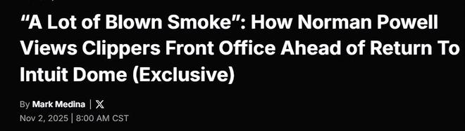 鲍威尔:现场氛围肯定会很热烈,比赛也会很精彩,我很期待回到那里。快船的球迷一直很棒,从一开始就支持我,即便我被交易后也是如此。我至今还能在社交平台上看到他们的留言和私信,说很想念我、希望我回去。所以我期待会有不错的氛围,不确定他们是否会播放致敬视频,但如果有的话,应该会是一段反响很好的内容。