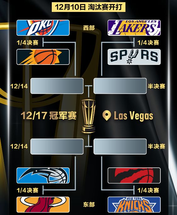 NBA杯八强出炉:湖人vs马刺 雷霆vs太阳 卫冕冠军出局东部乱斗